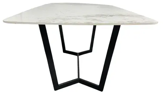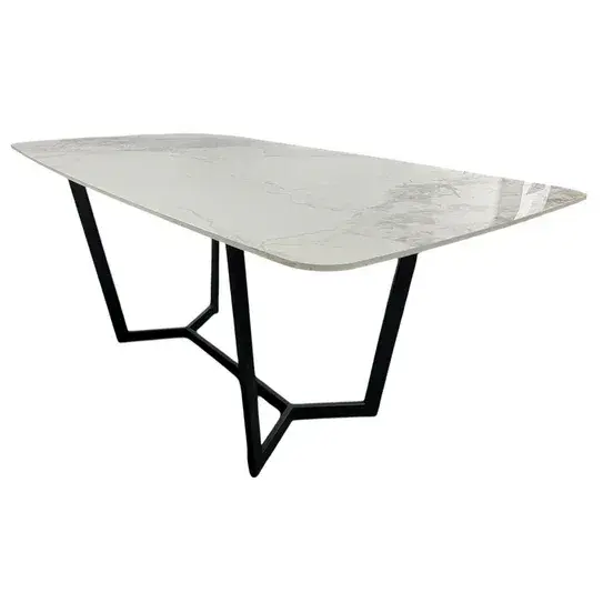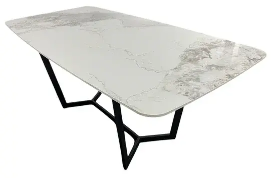 The Palazzo dining table features a stunning marble-inspired top, artfully designed with soft white tones and exquisite gold veining that catches the light from every angle. The smooth, polished surface offers both durability and effortless style, making it perfect for everyday meals or upscale entertaining.
