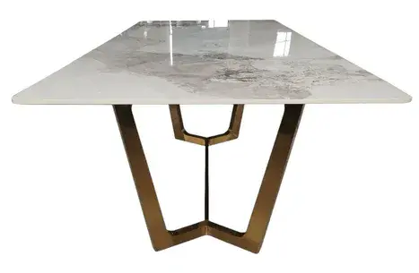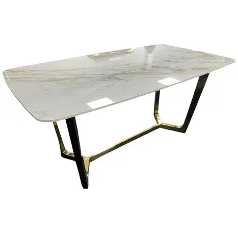 Supporting the tabletop are sleek, architectural gold or black finished legs that add a bold yet refined touch. Their clean, geometric lines create a minimalistic silhouette while lending exceptional stability and visual balance.
