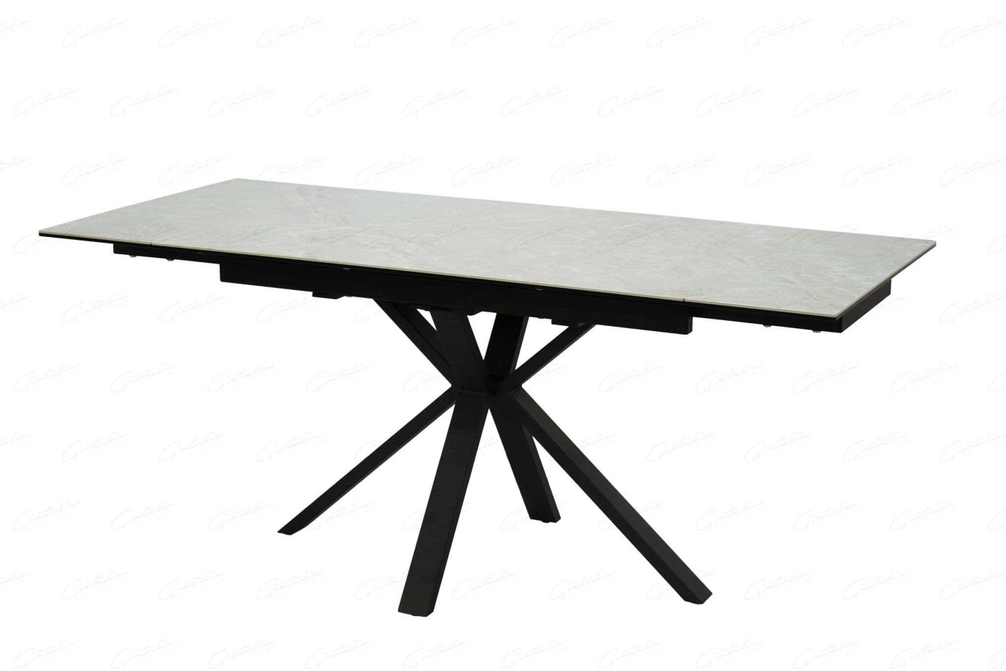 Featuring a remarkable Ceramic Marble top, supported by a pedestal and base forged by metal and finished off in black powder coating.