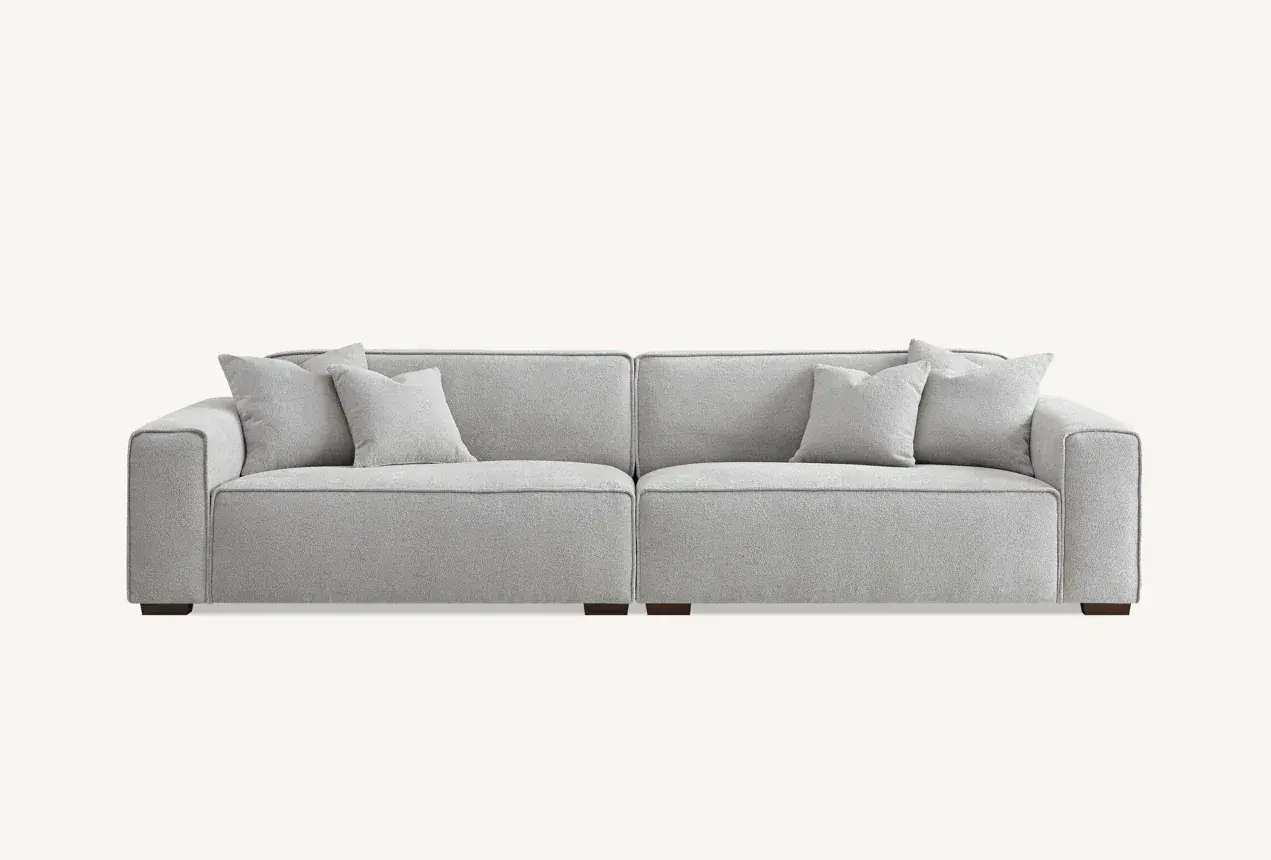 Upholstered in a soft, textured boucle fabric available in a curated palette of neutral tones, the Sorrento collection exemplifies modern minimalism at its finest.