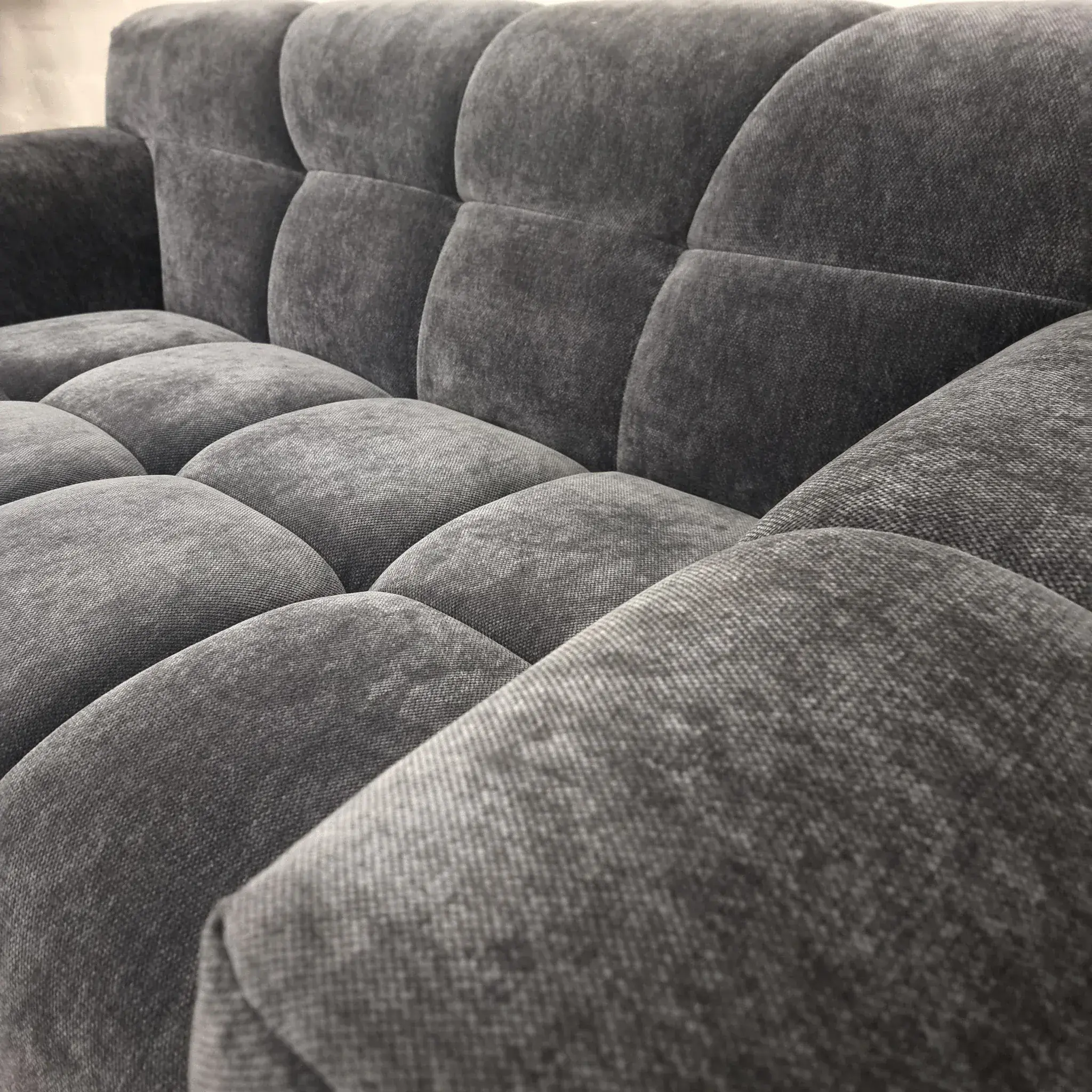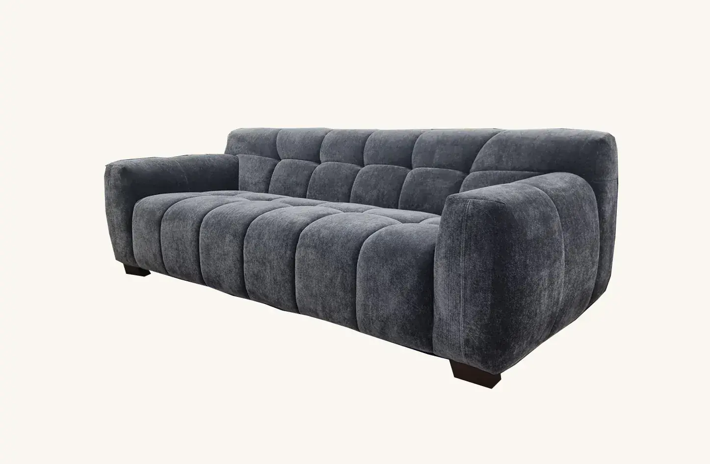 Experience the perfect blend of luxury and comfort with the Harlem Sofa. Meticulously crafted with deep channel stitching, it is upholstered in a stunning steel-colored mermaid fabric that subtly reflects and interacts with light, adding an element of sophistication to any room. This eye-catching design creates a striking centerpiece, while offering a wonderfully comfortable seating experience.
