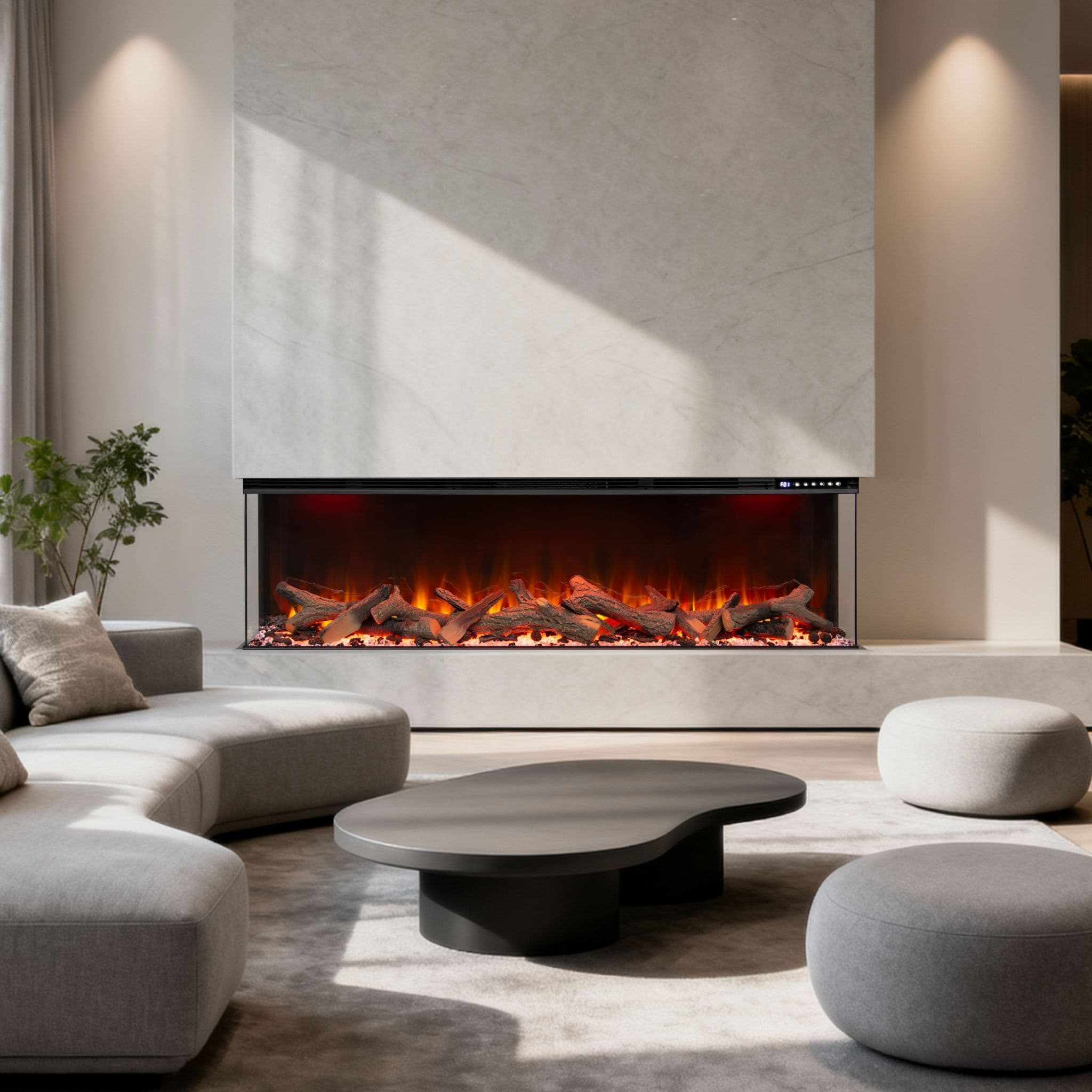 Introducing the Valenti 3D UHD Slimline Panoramic Electric Fire - the ultimate centrepiece for modern homes and media wall installations. With full-glass panoramic viewing and ultra-realistic flame depth, this fire delivers premium elegance and advanced smart control. Available in 50", 60", 72" and 80"