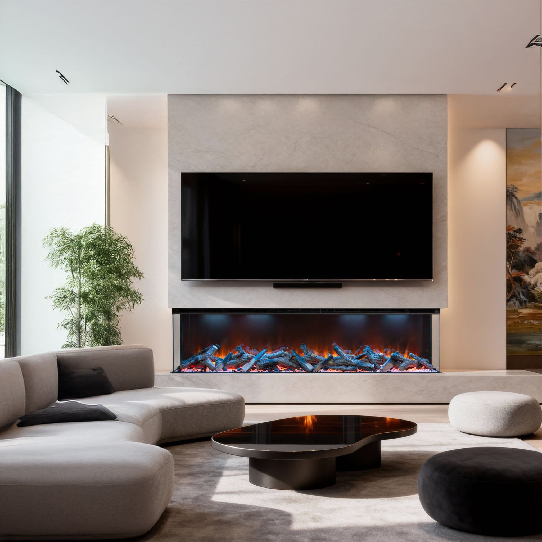 Introducing the Valenti 3D UHD Slimline Panoramic Electric Fire - the ultimate centrepiece for modern homes and media wall installations. With full-glass panoramic viewing and ultra-realistic flame depth, this fire delivers premium elegance and advanced smart control. Available in 50", 60", 72" and 80"