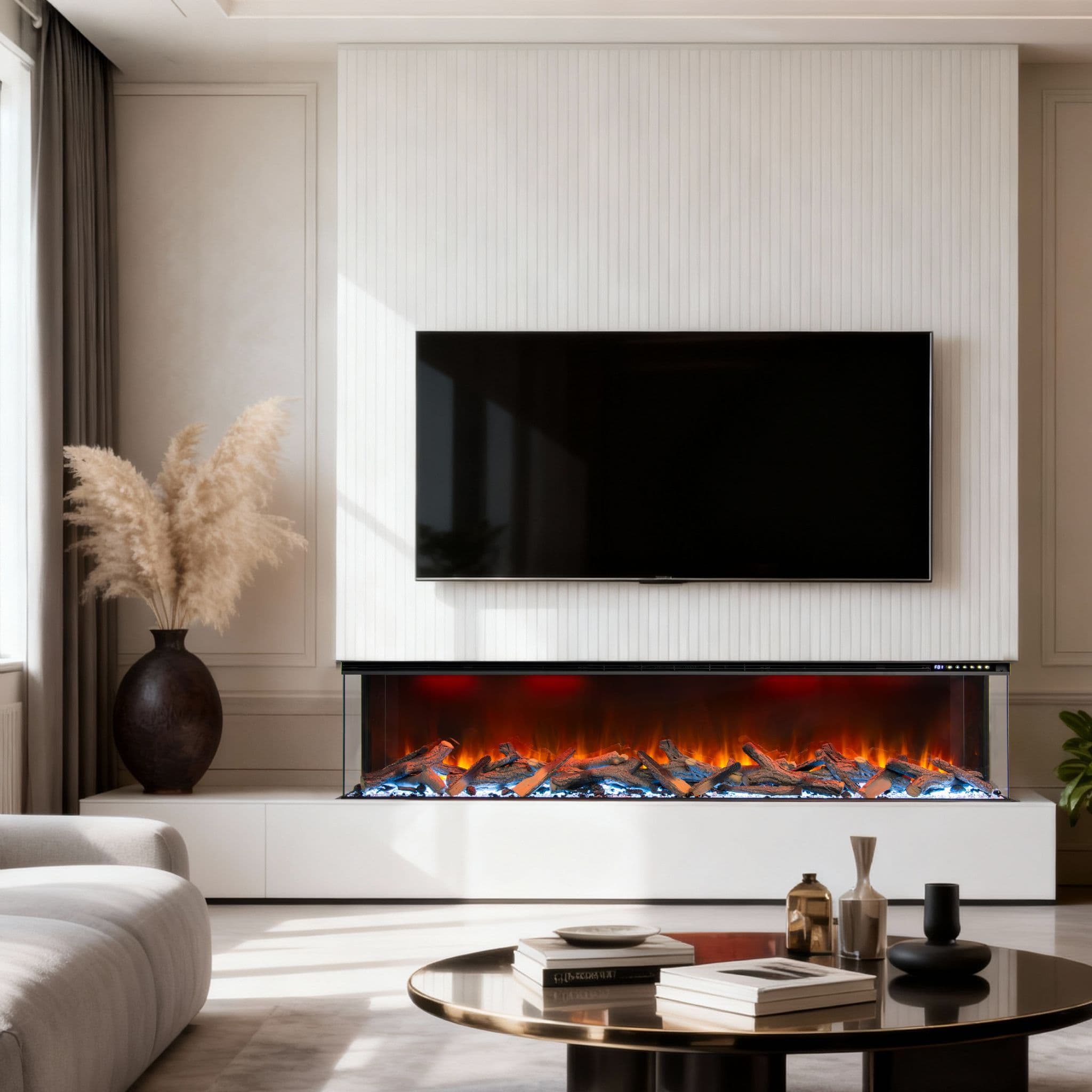 Introducing the Valenti 3D UHD Slimline Panoramic Electric Fire - the ultimate centrepiece for modern homes and media wall installations. With full-glass panoramic viewing and ultra-realistic flame depth, this fire delivers premium elegance and advanced smart control. Available in 50", 60", 72" and 80"